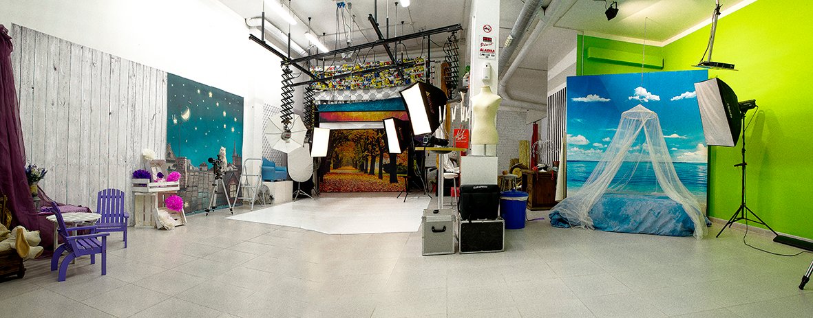 Con multitud de decorados, que nos permite recrear diferentes ambientes, para el retrato de personas y grandes grupos.